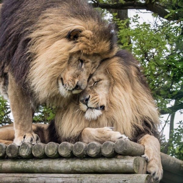 Tiny was the last surviving of him and his two brothers Kafara and Manzi and the passing of all three of these boys is like the end of an era for us here at the Sanctuary. The three boys resided here for almost 17 years, arriving from Paradise Wildlife Park as two-year-olds, just teenagers by lion standards. Here they grew from young boys into handsome lions in their prime. All three of them living together made an amazing spectacle for everyone to see. Especially when lying, lined up on their platform, side by side.