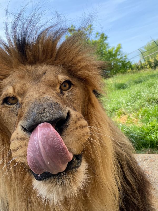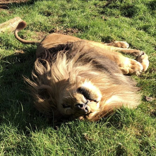 His rough start may have limited Tiny’s body size but what he lacked in bodyweight, Tiny made up for in lion mane! He had the largest and most luxurious mane of any lion to have lived at the sanctuary and his personality certainly had not been stunted either. Tiny was the ultimate prankster and always the instigator of mischief. Feed time routine involves keepers calling the cats into their dens while they clean the enclosures. When the cats are let out, they have a lovely big meal waiting for them as a reward. Therefore, for most cats, being shut in their dens is something they are keen to do, but not our Tiny! For Tiny, seeing the keepers arrive did not signal time to go into his den, it signalled time to start goofing around and leading his brother Kafara astray at the same time. Going into the den was nowhere near as fun as pretending to go in and bolting away at the last minute, nor was it as fun as play chasing with his brother and rolling around tantalisingly close to the entrance to prove to keepers who made the rules. When and only when Tiny decided play time was over (always after his less naughty brother), would he come inside so he could finally be fed by his endlessly patient (usually slightly flustered by this point) keepers. We wouldn’t have had him any other way.