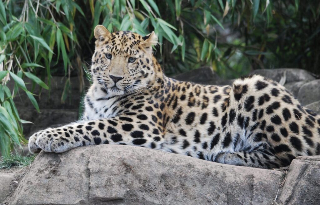 Amur leopards are listed as critically endangered on the IUCN Red List and are the most endangered big cat in the world. There are approximately 100 Amur leopards left in the wild and around 350 in captivity. The species can be found from far-eastern Russia in the Amur valley. The main threats faced in the wild are from poaching for their fur and the use of traditional Asian medicine.